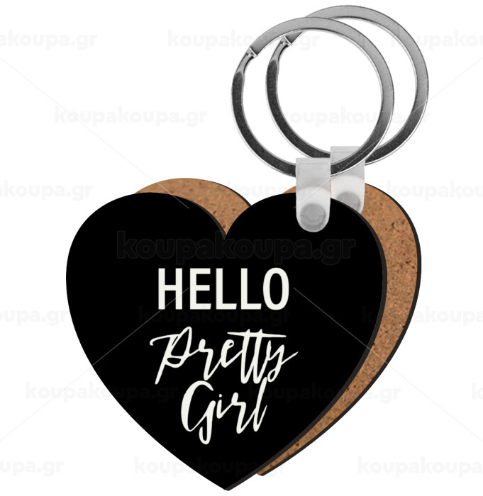 Hello pretty girl, Μπρελόκ Ξύλινο καρδιά MDF