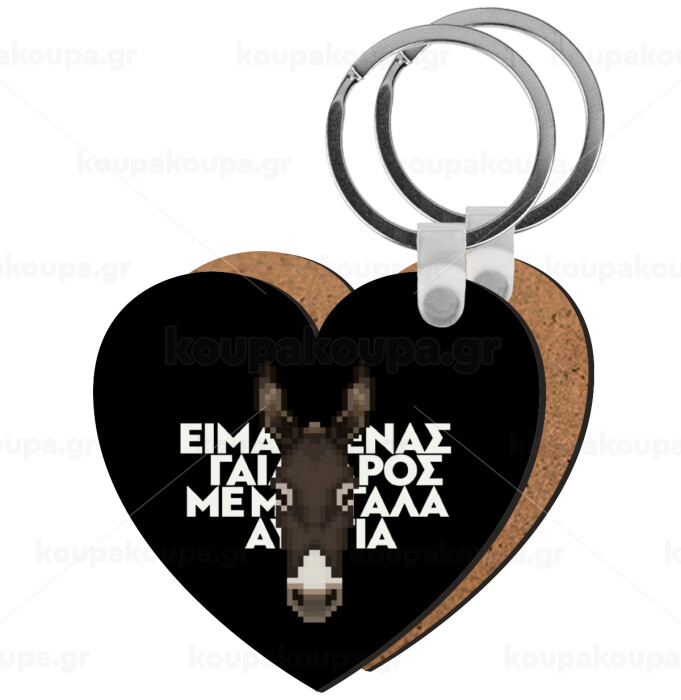Είμαι ένας γάιδαρος με μεγάλα αυτιά., Μπρελόκ Ξύλινο καρδιά MDF