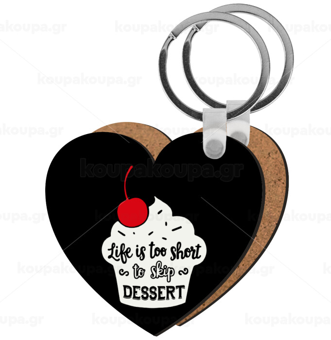 Life is too short, to skip Dessert, Μπρελόκ Ξύλινο καρδιά MDF