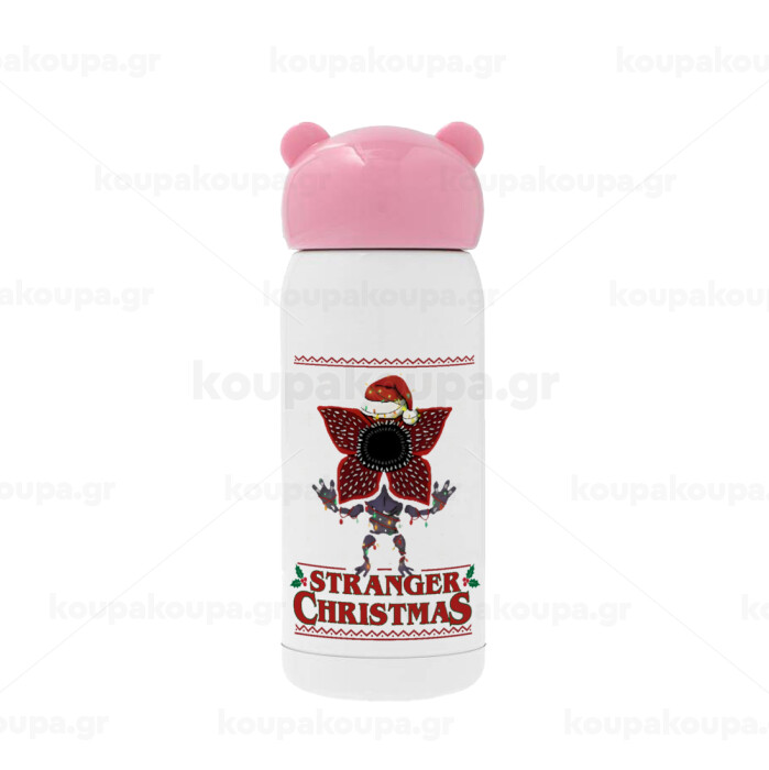 Stranger Things Christmas, Ροζ ανοξείδωτο παγούρι θερμό (Stainless steel), 320ml
