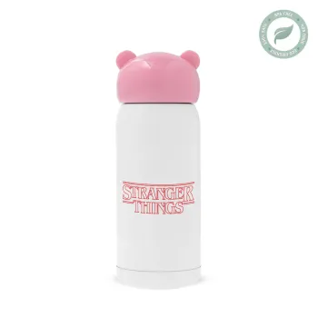 Stranger Things Logo, Ροζ ανοξείδωτο παγούρι θερμό (Stainless steel), 320ml
