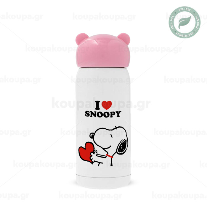 I LOVE SNOOPY, Ροζ ανοξείδωτο παγούρι θερμό (Stainless steel), 320ml
