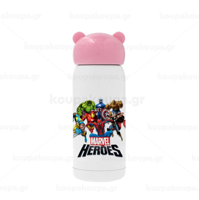 MARVEL heroes, Ροζ ανοξείδωτο παγούρι θερμό (Stainless steel), 320ml