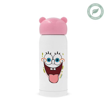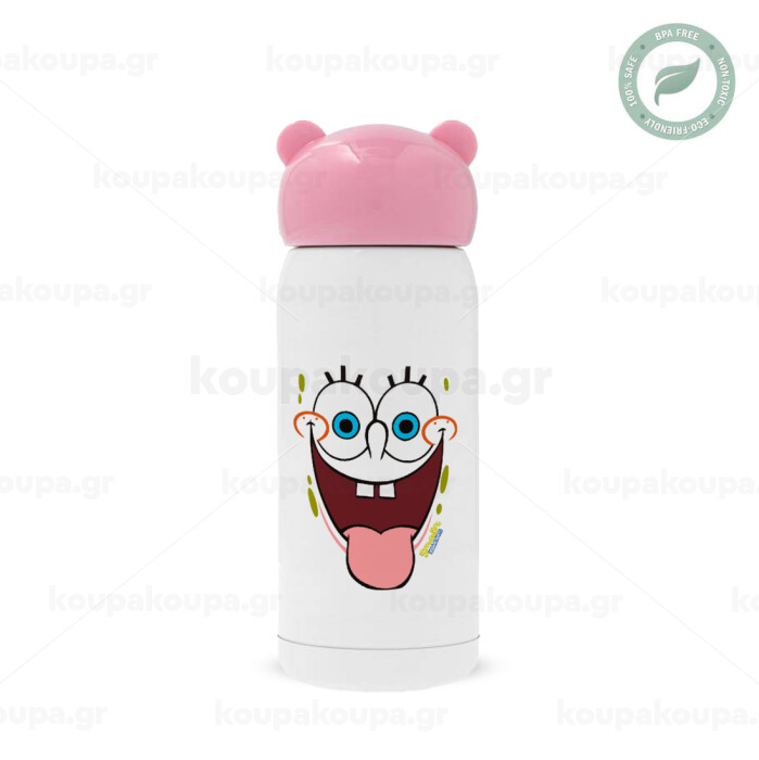 Μπομπ Σφουγγαράκης χαμόγελο, Ροζ ανοξείδωτο παγούρι θερμό (Stainless steel), 320ml