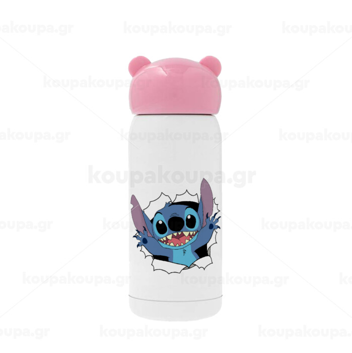 Stitch hello!!!, Ροζ ανοξείδωτο παγούρι θερμό (Stainless steel), 320ml