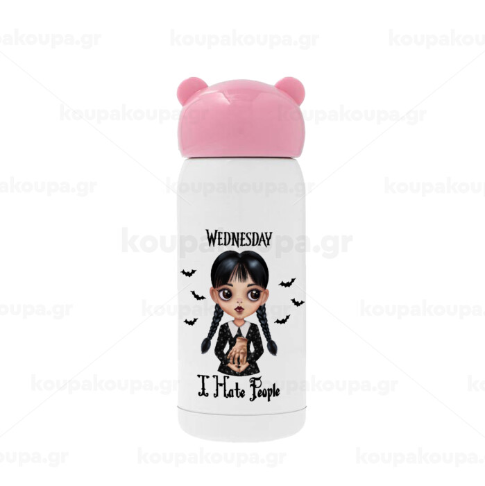 Wednesday Adams, i hate people, Ροζ ανοξείδωτο παγούρι θερμό (Stainless steel), 320ml