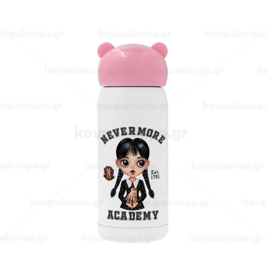 Wednesday Adams, nevermore, Ροζ ανοξείδωτο παγούρι θερμό (Stainless steel), 320ml