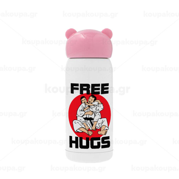 JUDO free hugs, Ροζ ανοξείδωτο παγούρι θερμό (Stainless steel), 320ml