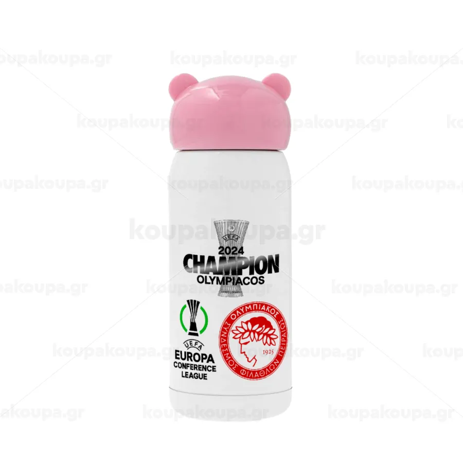 Olympiacos UEFA Europa Conference League Champion 2024, Ροζ ανοξείδωτο παγούρι θερμό (Stainless steel), 320ml