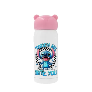 Stitch Touch Me And I Will Bite You, Ροζ ανοξείδωτο παγούρι θερμό (Stainless steel), 320ml