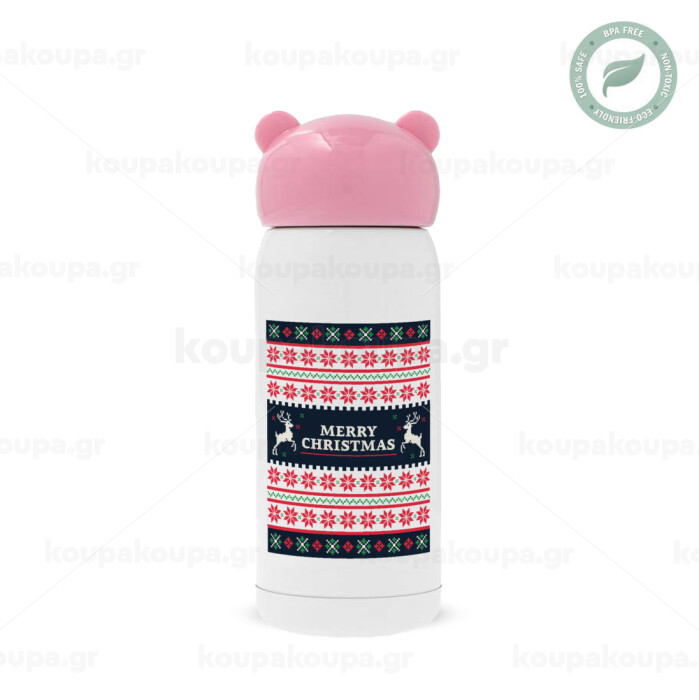 Merry Christmas Vintage, Ροζ ανοξείδωτο παγούρι θερμό (Stainless steel), 320ml