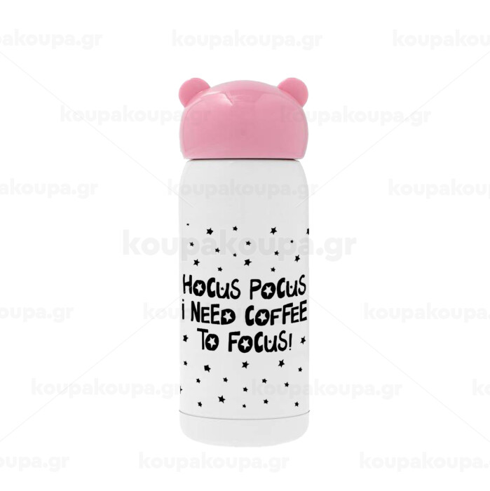 Hocus pocus i need coffee to focus - halloween, Ροζ ανοξείδωτο παγούρι θερμό (Stainless steel), 320ml