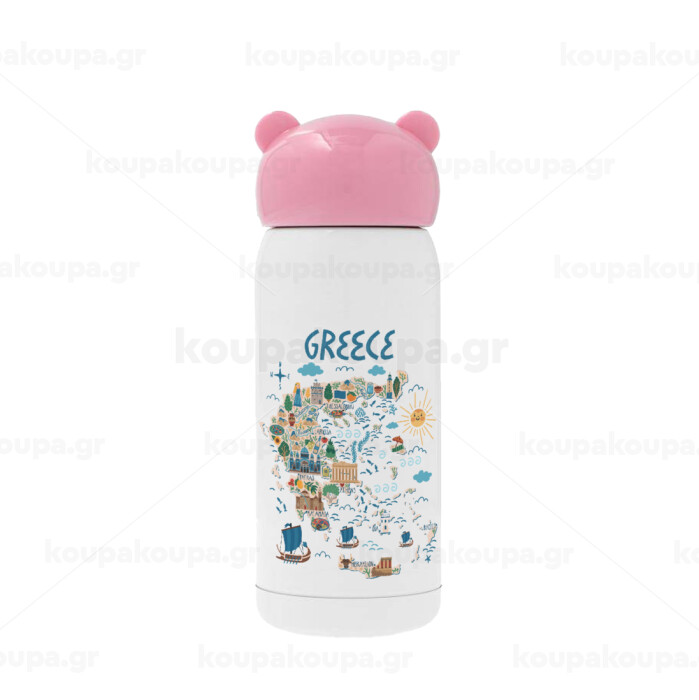 Χάρτης Ελλάδος, Ροζ ανοξείδωτο παγούρι θερμό (Stainless steel), 320ml