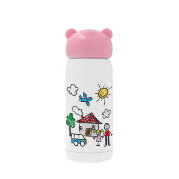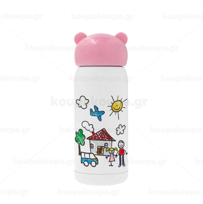 Παιδική ζωγραφιά, Ροζ ανοξείδωτο παγούρι θερμό (Stainless steel), 320ml
