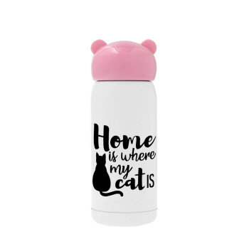 Home is where my cat is!, Ροζ ανοξείδωτο παγούρι θερμό (Stainless steel), 320ml