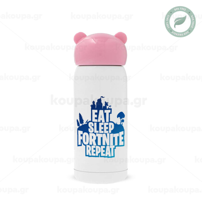 Eat Sleep Fortnite Repeat, Ροζ ανοξείδωτο παγούρι θερμό (Stainless steel), 320ml