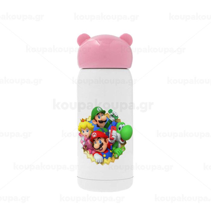 Super mario and Friends, Ροζ ανοξείδωτο παγούρι θερμό (Stainless steel), 320ml