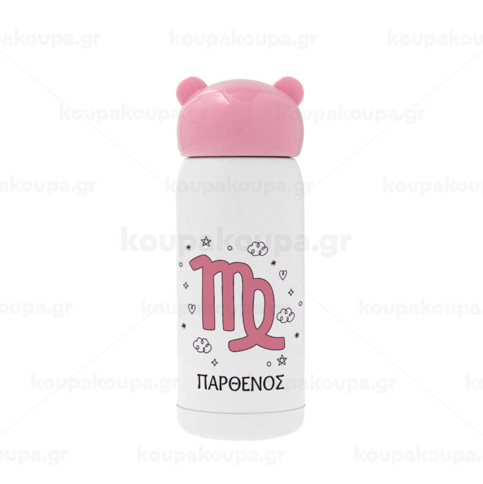 Ζώδια Παρθένος, Ροζ ανοξείδωτο παγούρι θερμό (Stainless steel), 320ml