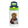 Ιησούς, Παιδικό παγούρι θερμό, ανοξείδωτο, με καλαμάκι ασφαλείας, πράσινο/μπλε (350ml)