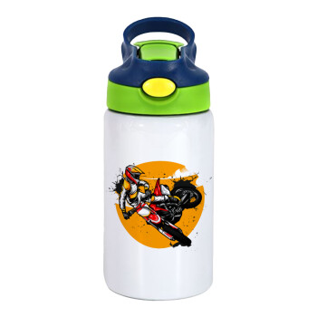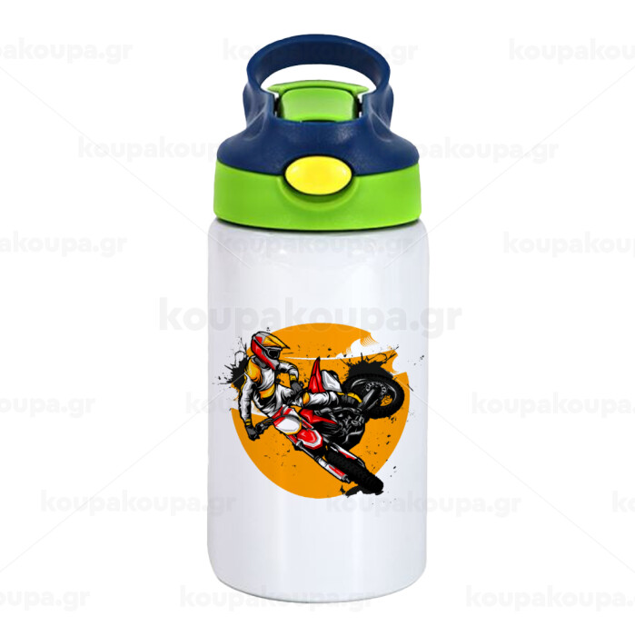 Motocross, Παιδικό παγούρι θερμό, ανοξείδωτο, με καλαμάκι ασφαλείας, πράσινο/μπλε (350ml)