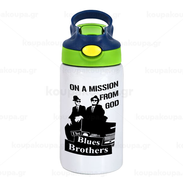 Blues brothers on a mission from God, Παιδικό παγούρι θερμό, ανοξείδωτο, με καλαμάκι ασφαλείας, πράσινο/μπλε (350ml)