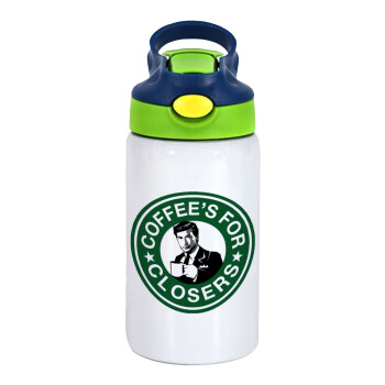 Coffee's for closers, Παιδικό παγούρι θερμό, ανοξείδωτο, με καλαμάκι ασφαλείας, πράσινο/μπλε (350ml)