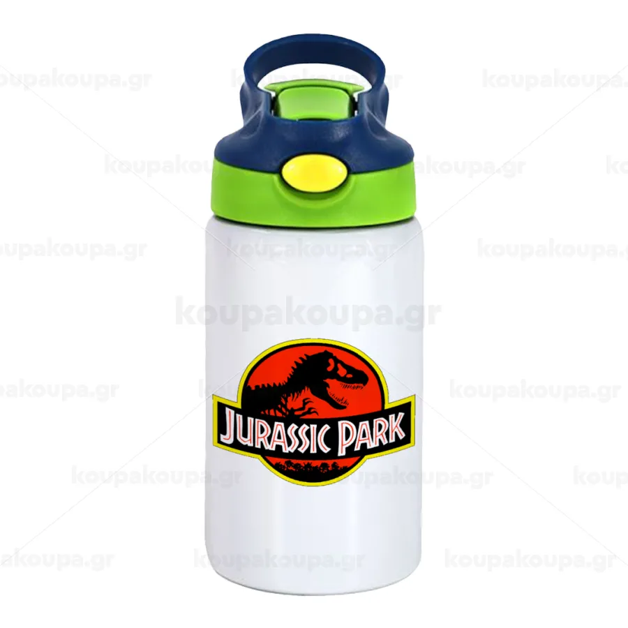 Jurassic park, Παιδικό παγούρι θερμό, ανοξείδωτο, με καλαμάκι ασφαλείας, πράσινο/μπλε (350ml)