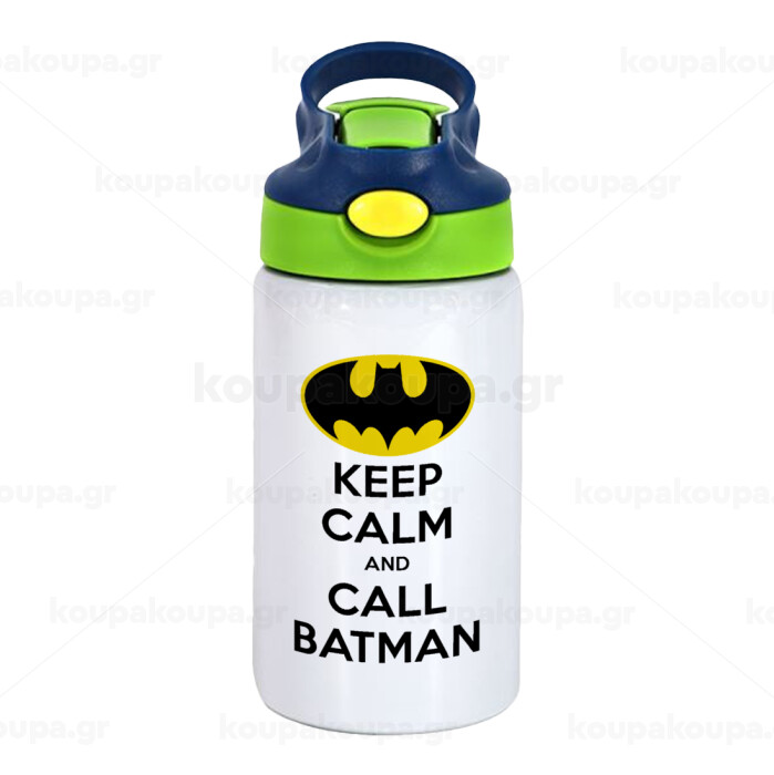 KEEP CALM & Call BATMAN, Παιδικό παγούρι θερμό, ανοξείδωτο, με καλαμάκι ασφαλείας, πράσινο/μπλε (350ml)