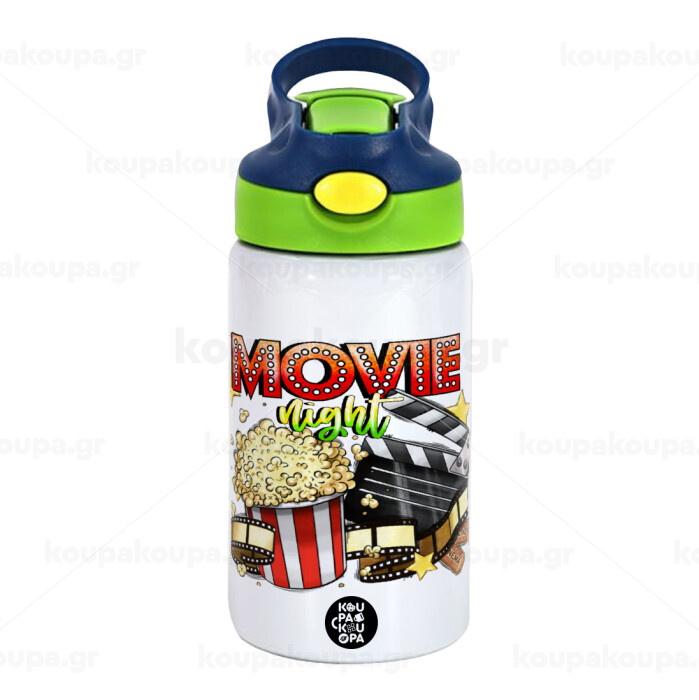 Movie night, Παιδικό παγούρι θερμό, ανοξείδωτο, με καλαμάκι ασφαλείας, πράσινο/μπλε (350ml)