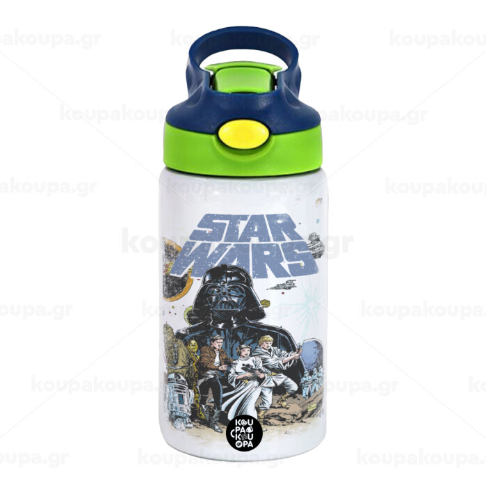 Star Wars, Παιδικό παγούρι θερμό, ανοξείδωτο, με καλαμάκι ασφαλείας, πράσινο/μπλε (350ml)