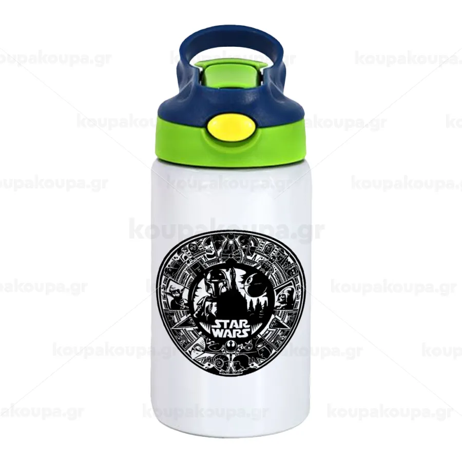 Star Wars Disk, Παιδικό παγούρι θερμό, ανοξείδωτο, με καλαμάκι ασφαλείας, πράσινο/μπλε (350ml)