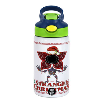 Stranger Things Christmas, Παιδικό παγούρι θερμό, ανοξείδωτο, με καλαμάκι ασφαλείας, πράσινο/μπλε (350ml)
