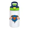 Superman hands, Παιδικό παγούρι θερμό, ανοξείδωτο, με καλαμάκι ασφαλείας, πράσινο/μπλε (350ml)
