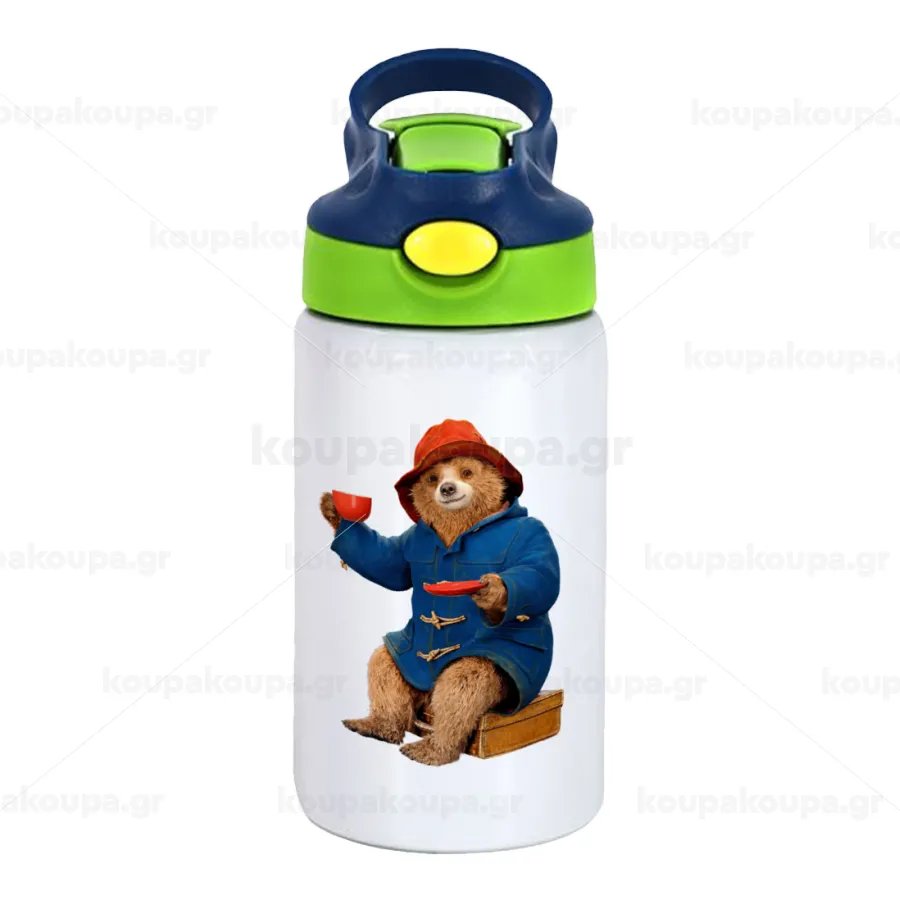 Αρκουδάκι Πάντινγκτον, Παιδικό παγούρι θερμό, ανοξείδωτο, με καλαμάκι ασφαλείας, πράσινο/μπλε (350ml)