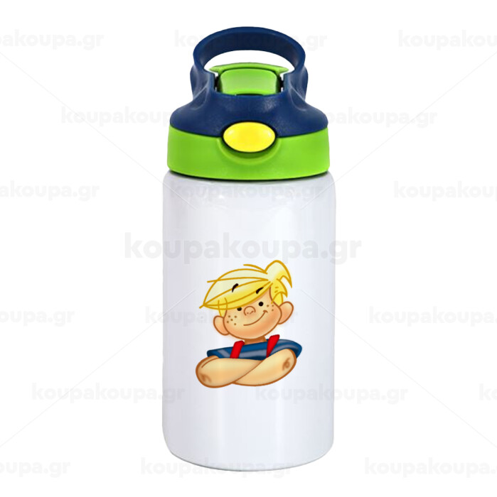 Ντένις ο τρομερός, Παιδικό παγούρι θερμό, ανοξείδωτο, με καλαμάκι ασφαλείας, πράσινο/μπλε (350ml)