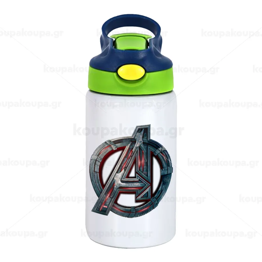 Avengers, Παιδικό παγούρι θερμό, ανοξείδωτο, με καλαμάκι ασφαλείας, πράσινο/μπλε (350ml)
