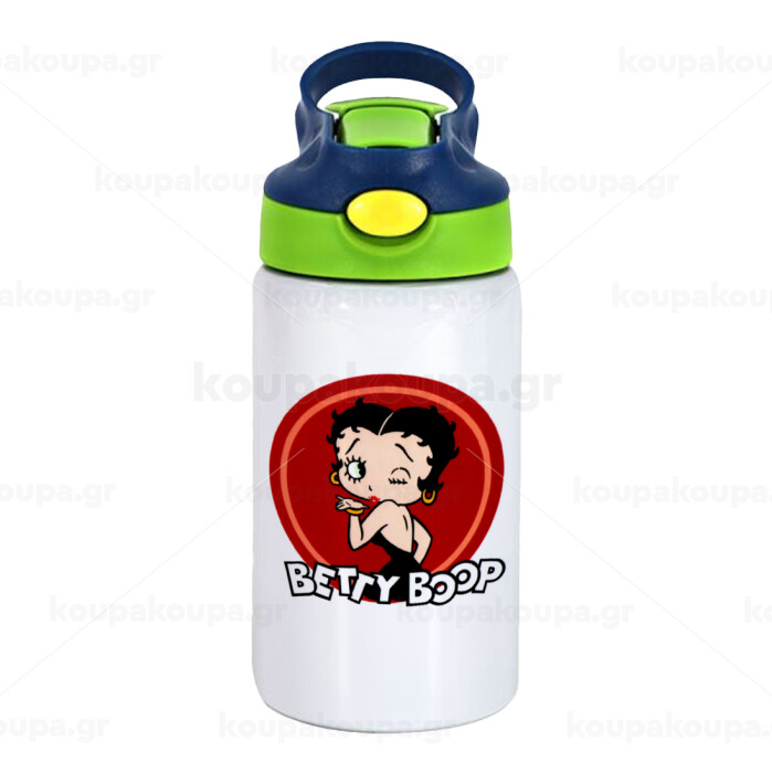 Betty Boop kiss, Παιδικό παγούρι θερμό, ανοξείδωτο, με καλαμάκι ασφαλείας, πράσινο/μπλε (350ml)