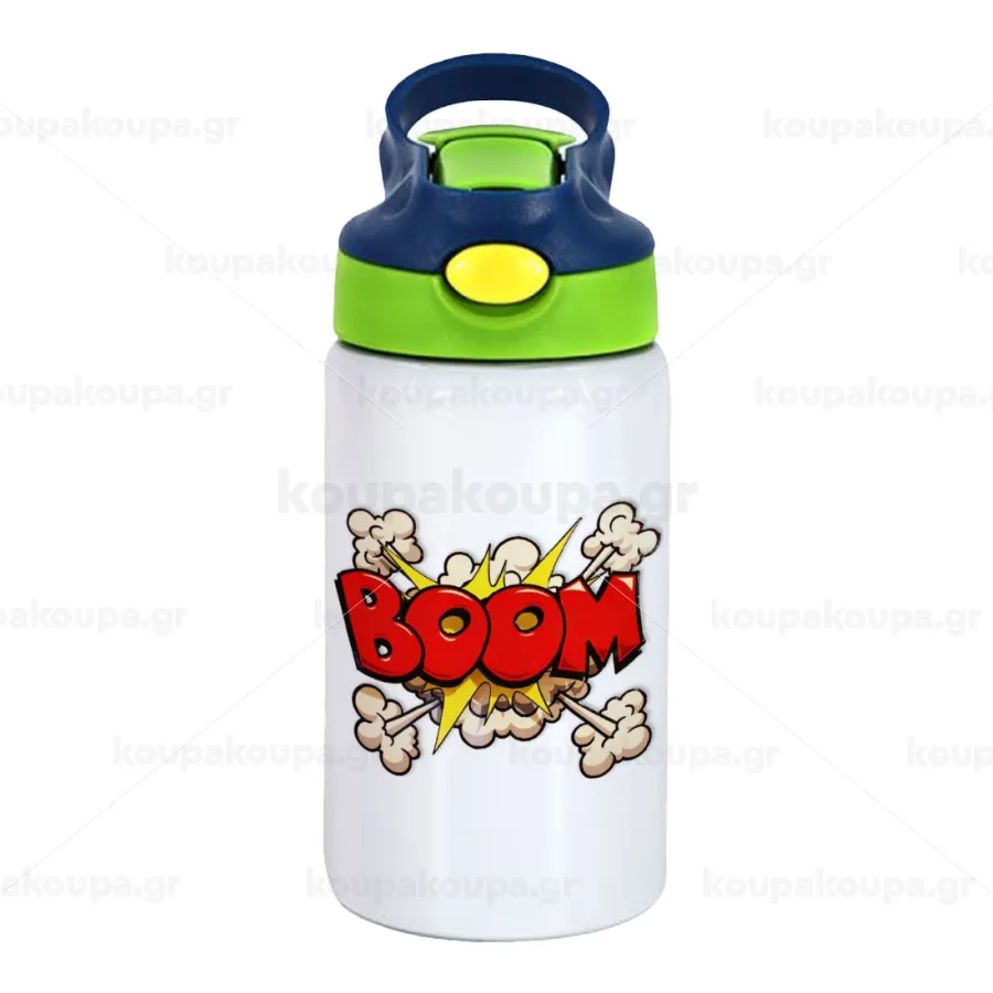 BOOM!!!, Παιδικό παγούρι θερμό, ανοξείδωτο, με καλαμάκι ασφαλείας, πράσινο/μπλε (350ml)