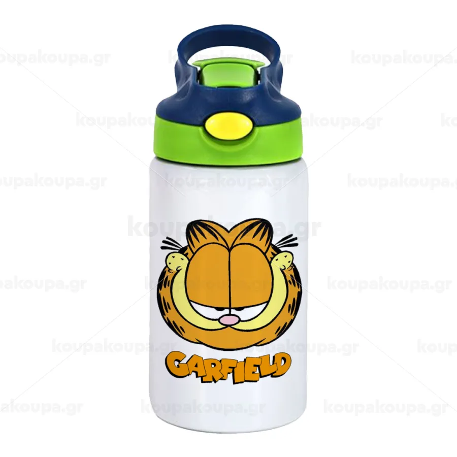 Garfield, Παιδικό παγούρι θερμό, ανοξείδωτο, με καλαμάκι ασφαλείας, πράσινο/μπλε (350ml)
