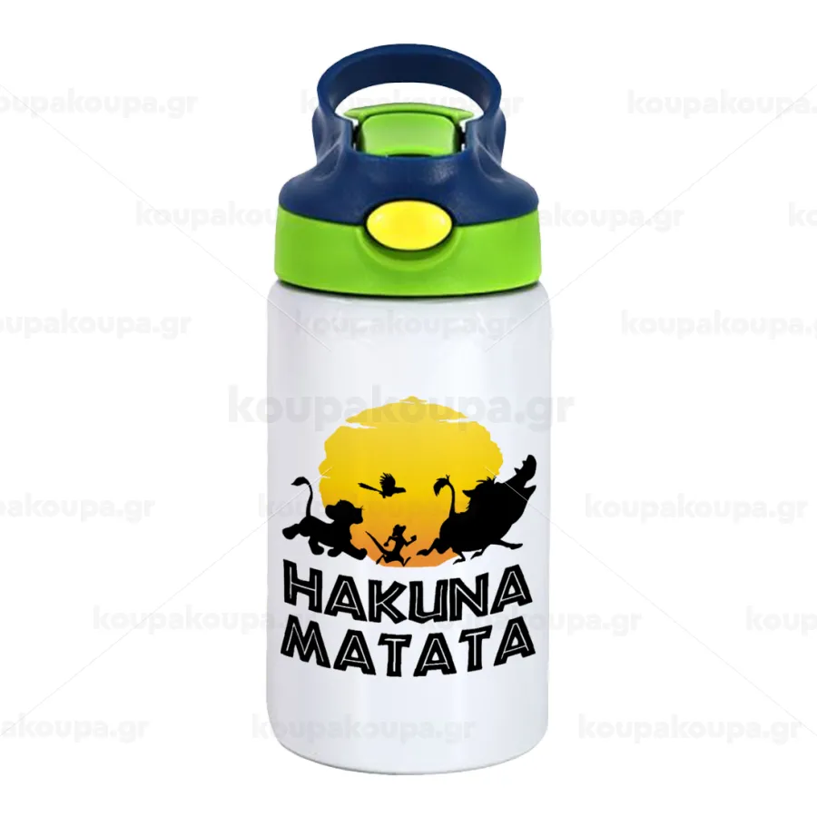 Hakuna Matata, Παιδικό παγούρι θερμό, ανοξείδωτο, με καλαμάκι ασφαλείας, πράσινο/μπλε (350ml)