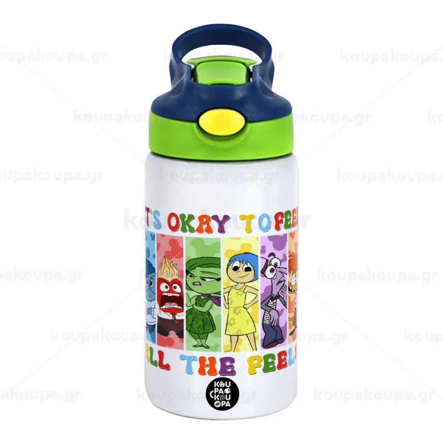 Inside Out It's Okay To Feel All The Feels , Παιδικό παγούρι θερμό, ανοξείδωτο, με καλαμάκι ασφαλείας, πράσινο/μπλε (350ml)
