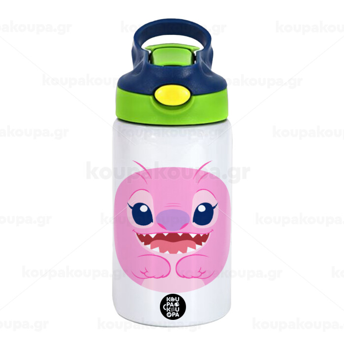 Lilo & Stitch Angel pink, Παιδικό παγούρι θερμό, ανοξείδωτο, με καλαμάκι ασφαλείας, πράσινο/μπλε (350ml)