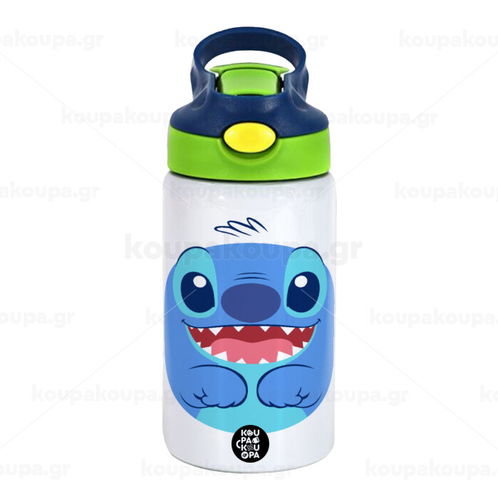 Lilo & Stitch blue, Παιδικό παγούρι θερμό, ανοξείδωτο, με καλαμάκι ασφαλείας, πράσινο/μπλε (350ml)