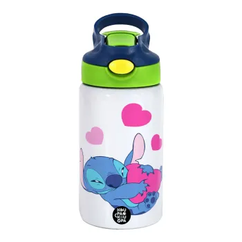 Lilo & Stitch hugs and hearts, Παιδικό παγούρι θερμό, ανοξείδωτο, με καλαμάκι ασφαλείας, πράσινο/μπλε (350ml)