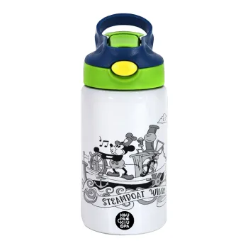 Mickey steamboat, Παιδικό παγούρι θερμό, ανοξείδωτο, με καλαμάκι ασφαλείας, πράσινο/μπλε (350ml)