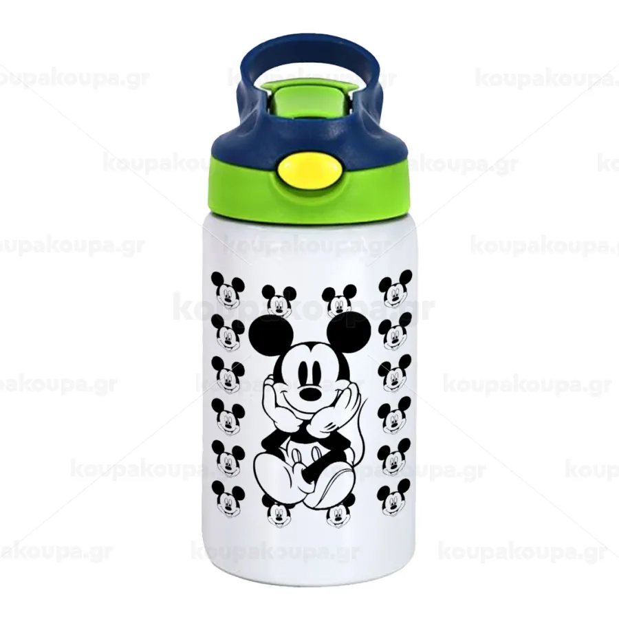 Mickey, Παιδικό παγούρι θερμό, ανοξείδωτο, με καλαμάκι ασφαλείας, πράσινο/μπλε (350ml)