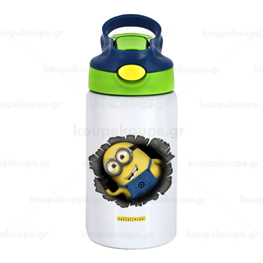 Minions hi, Παιδικό παγούρι θερμό, ανοξείδωτο, με καλαμάκι ασφαλείας, πράσινο/μπλε (350ml)