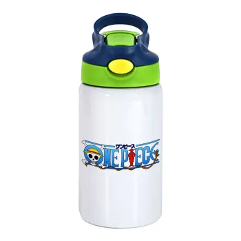 Onepiece logo, Παιδικό παγούρι θερμό, ανοξείδωτο, με καλαμάκι ασφαλείας, πράσινο/μπλε (350ml)