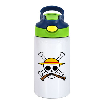 Onepiece skull, Παιδικό παγούρι θερμό, ανοξείδωτο, με καλαμάκι ασφαλείας, πράσινο/μπλε (350ml)