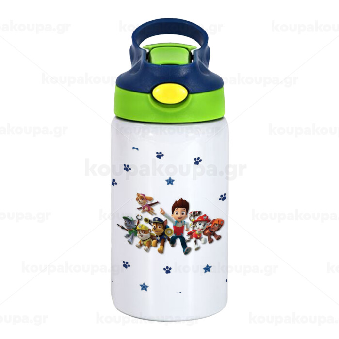 paw patrol, Παιδικό παγούρι θερμό, ανοξείδωτο, με καλαμάκι ασφαλείας, πράσινο/μπλε (350ml)